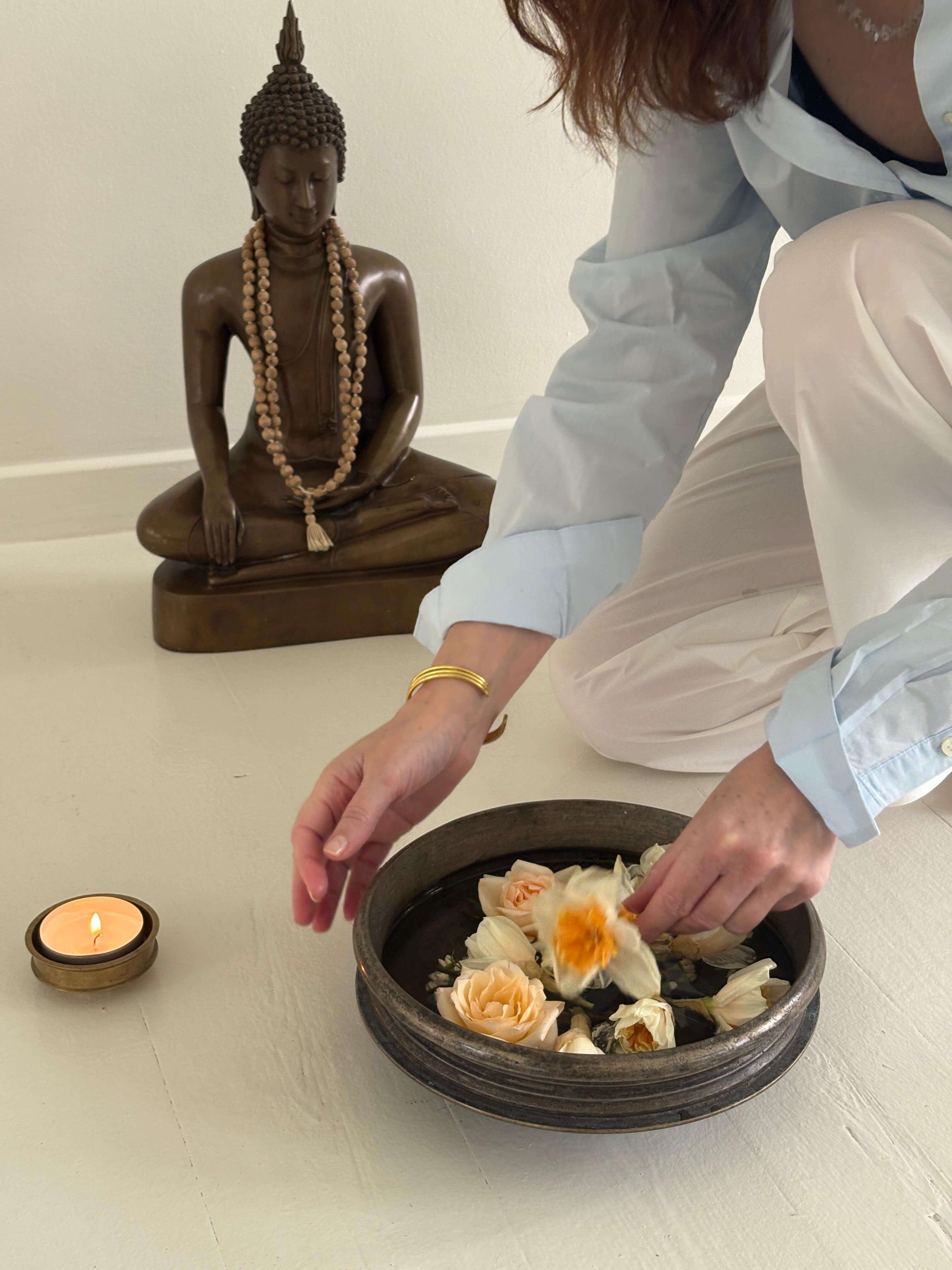 Sammen skaber vi en flower-mandala, vi får tid til refleksion,