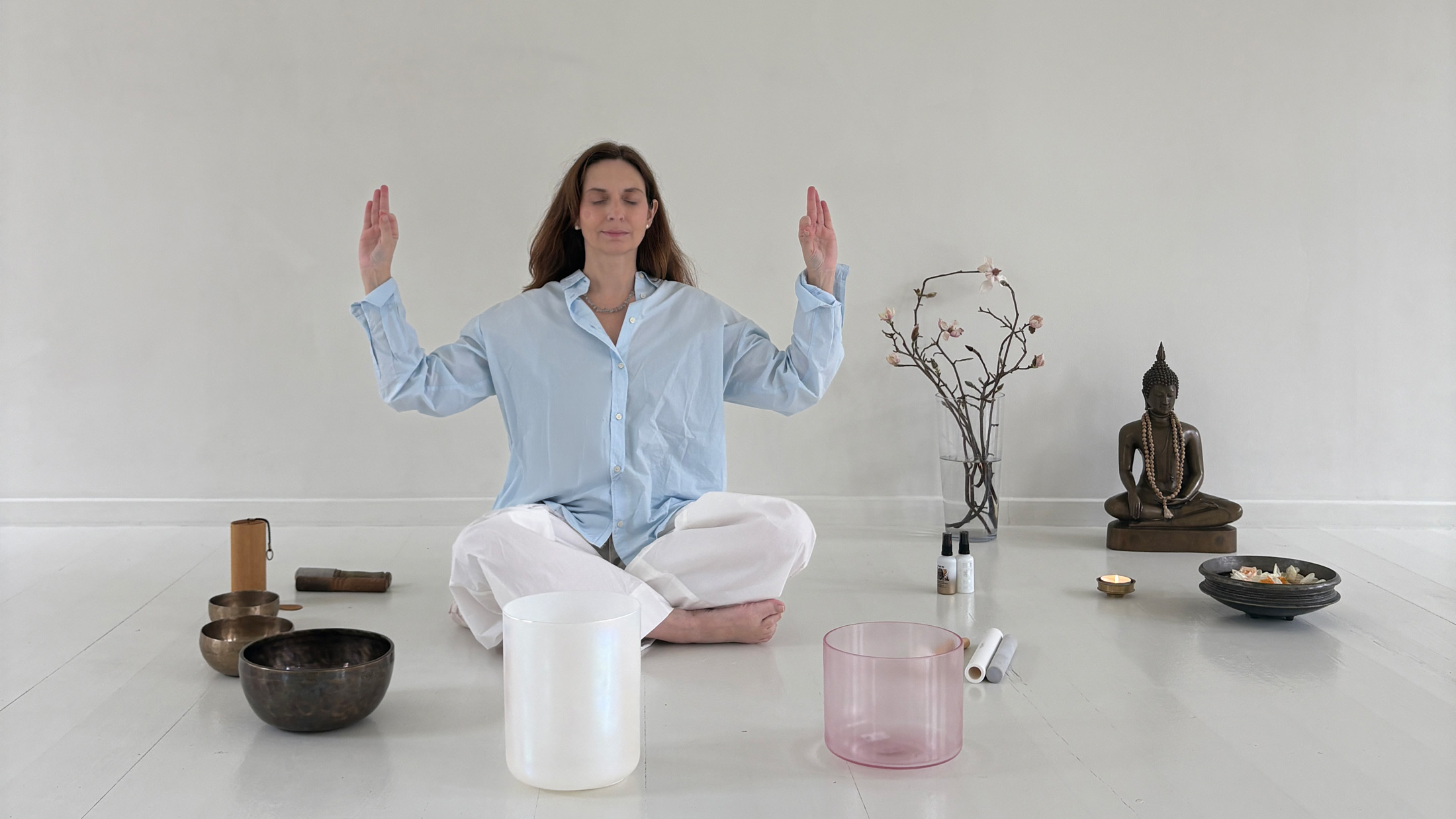 Lydens frekvenser og toner fra Himalayan syngeskåle, Alchemy SlowMuse Crystal bowls samt Crystal Tones tager dig på en rejse ind i meditation og grounder vores intention i os.